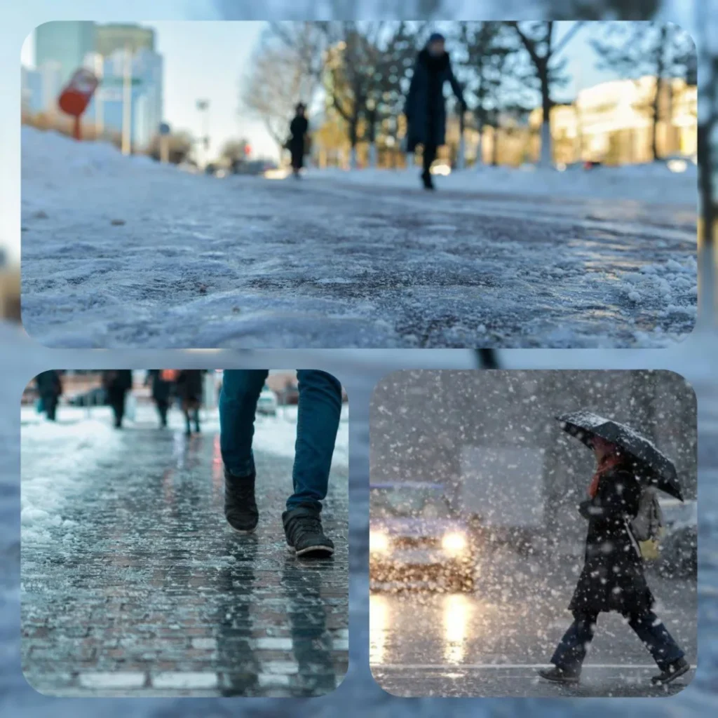 Смотрите себе под ноги, старайтесь обходить опасные места. Если ледяную «лужу» обойти невозможно, то передвигайтесь по ней, как лыжник, небольшими скользящими шажками.