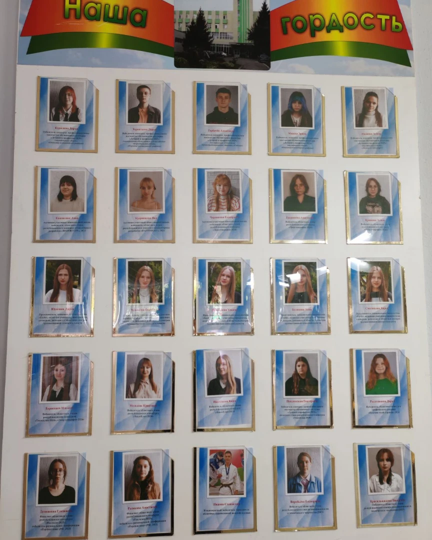В холле первого этажа колледжа обновлен информационный стенд «Наша гордость», в котором размещены фотографии обучающихся, которые достигли наиболее хороших результатов в изучении предметов, в спорте и творчестве, являются волонтёрами и членами общественных организаций, занимают активную жизненную позицию.