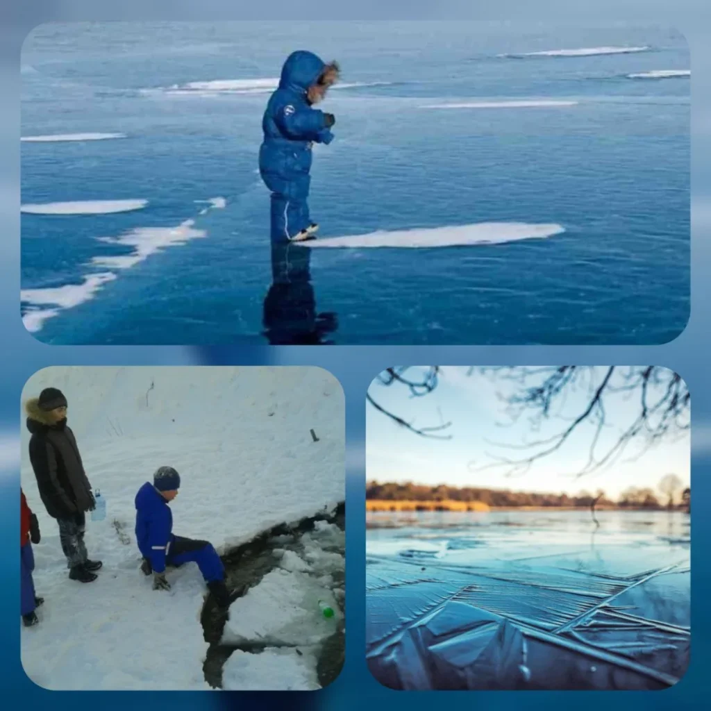 Безопасным для человека считается лёд толщиною не менее 10 сантиметров в пресной воде.