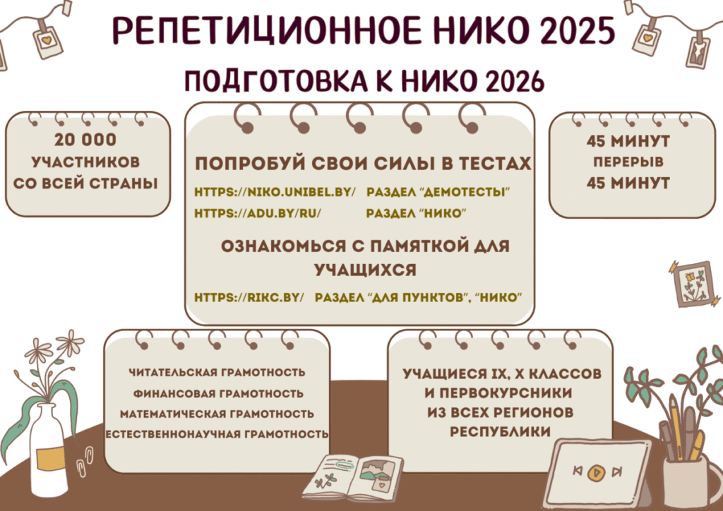 Подробности про репетиционный этап национального исследования качества образования (НИКО) доступны по ссылке https://niko.unibel.by/