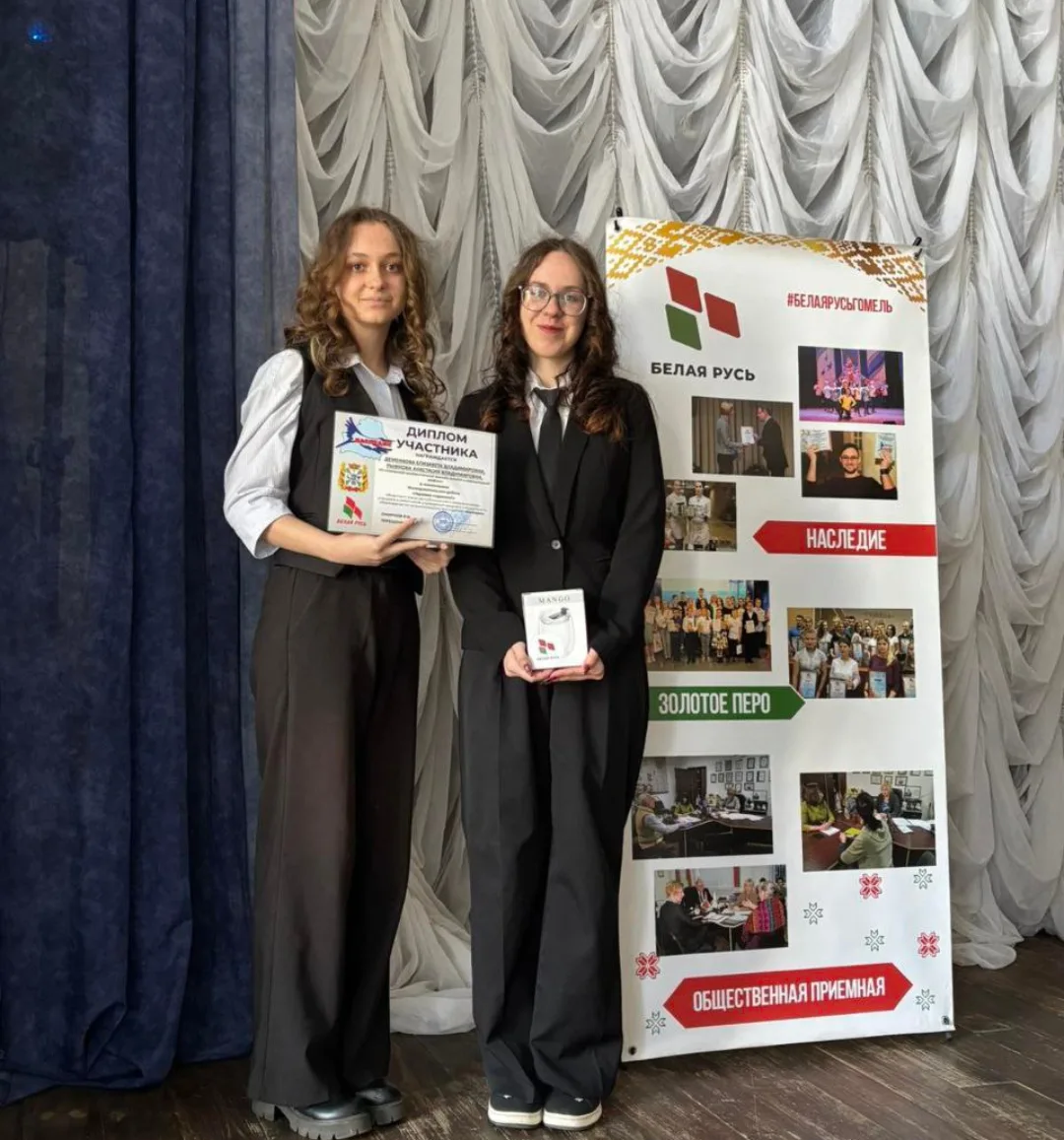 Обучающиеся колледжа дизайна и компьютерной графики Деменкова Елизавета и Рыжкова Анастасия награждены дипломом участника и памятными призами за исследовательскую работу на тему: «Интерактивная карта «Их именами названы улицы Гомеля»