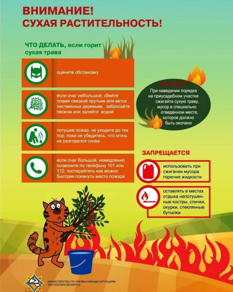 Если вы стали очевидцем горения сухой растительности немедленно позвоните по телефонным номерам 101 или 112, постарайтесь покинуть место пожара.