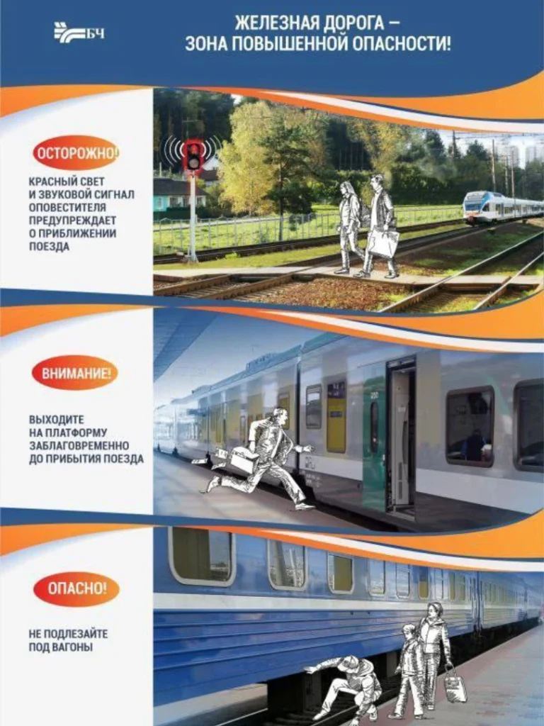 Белорусская железная дорога ПРИЗЫВАЕТ граждан соблюдать правила безопасности при нахождении на железнодорожных путях и вблизи железнодорожного полотна: