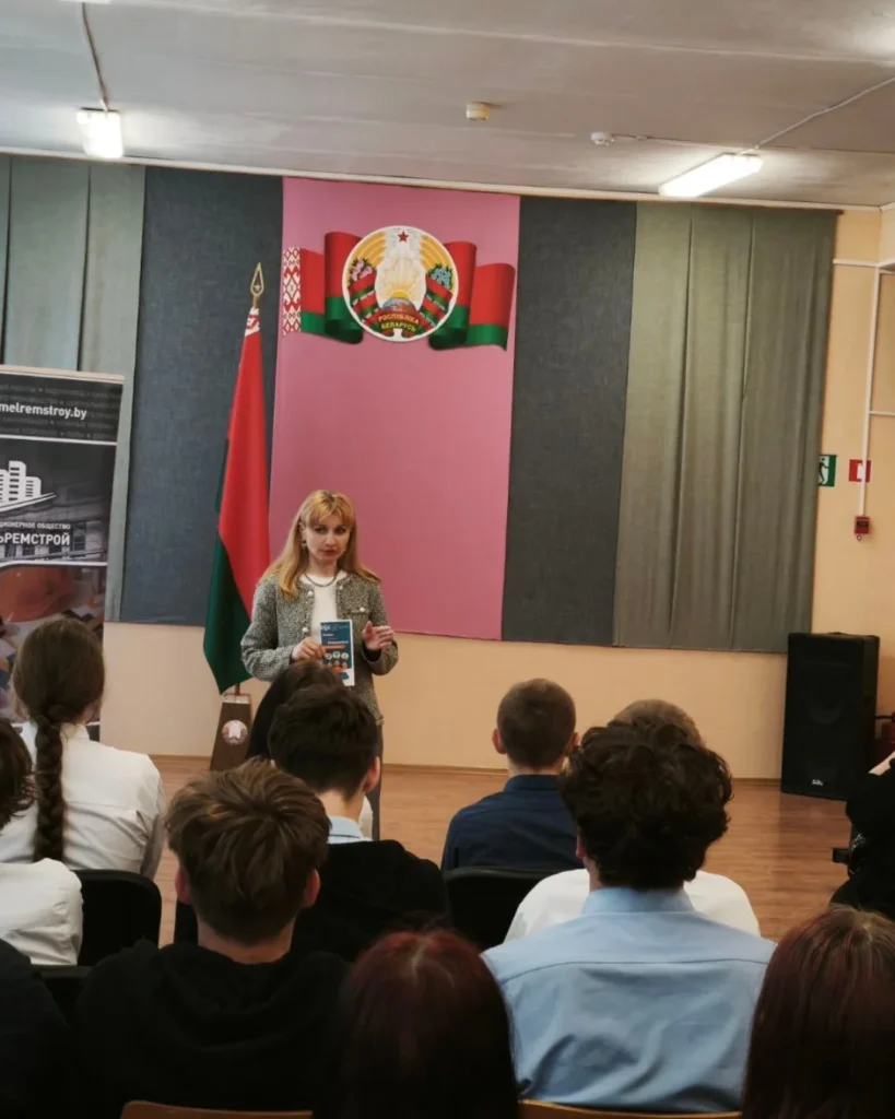 01 апреля мастер производственного обучения, член приемной комиссии Копенкова Анна Сергеевна приняла участие в профориентационном мероприятии для учащихся школ Хойникского района Гомельской области. Данное выездное мероприятие было организовано базовым предприятием нашего колледжа ОАО «Гомельремстрой». Анна Сергеевна рассказывала учащимся о специальностях и квалификациях, на которые можно поступить в 2026 году в нашем колледже, условиях поступления и обучения. Так же ребятам рассказали об условиях целевой подготовки.