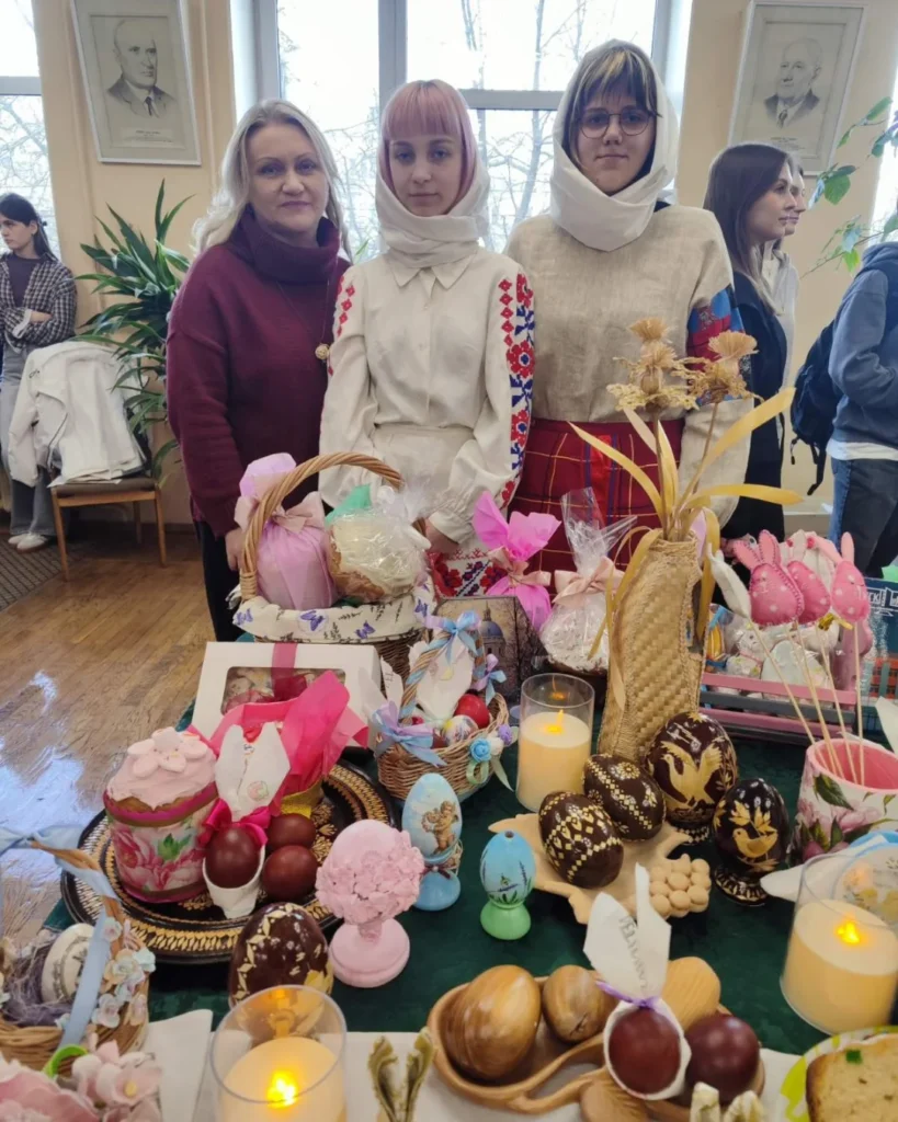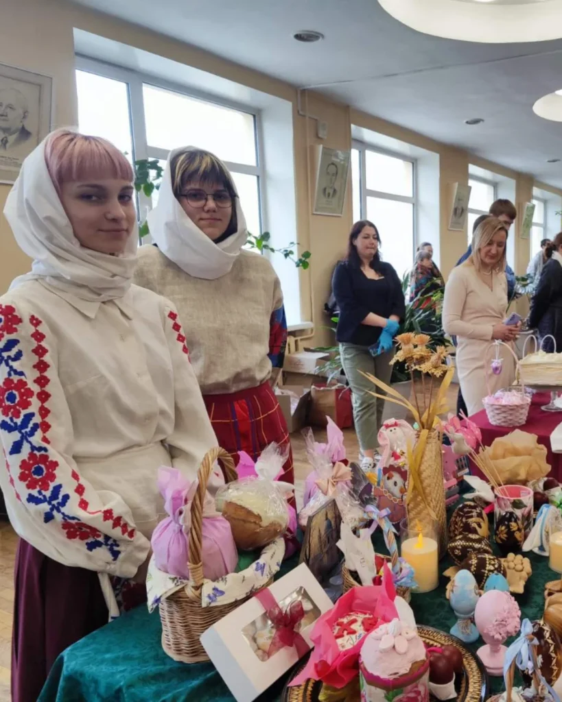 13 апреля председатель ОО «Белорусский союз женщин» Ковалёва Наталья Леонидовна, председатель ОО «Белая Русь» Быкова Наталья Владиславовна, обучающиеся группы 1Д колледжа приняли участие в выставке «Пасхальная фантазия», которая прошла в УО «БелГУТ». В ходе выставки была проведена благотворительная акция «Согреем детские сердца», в которой представители различных организаций преподнесли в дар пасхальные куличи детям из многодетных семей и детских домов, а также было организовано чаепитие для всех участников выставки.