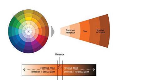 Смешивая хроматические и ахроматические цвета, мы получим цветовой круг с изменением цветового тона и насыщенности