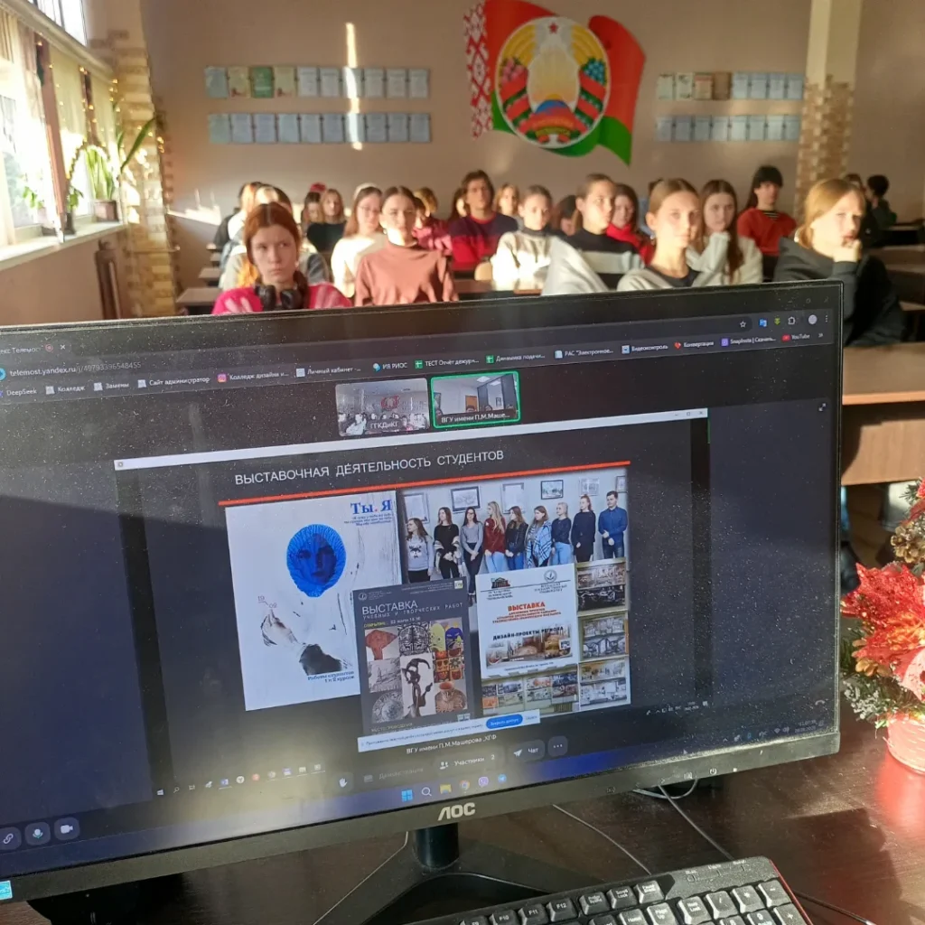 Виртуальная встреча состоялась 07 марта в колледже с Витебским государственным университетом имени П.М. Машерова, художественно-графическим факультетом. Участники встречи-обучающиеся групп профессионально-технического образования смогли узнать о правилах поступления в университет, периодах обучения.