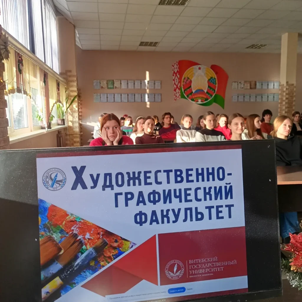 27 марта состоялась онлайн встреча обучающихся выпускных групп 31, 1Х, 3ДПИ с деканатом Художественно-графического факультета Витебского государственного университета имени П.М.Машерова. Обучающимся рассказали о деятельности факультета, правилах приема на специальности, вопросах целевой подготовки.