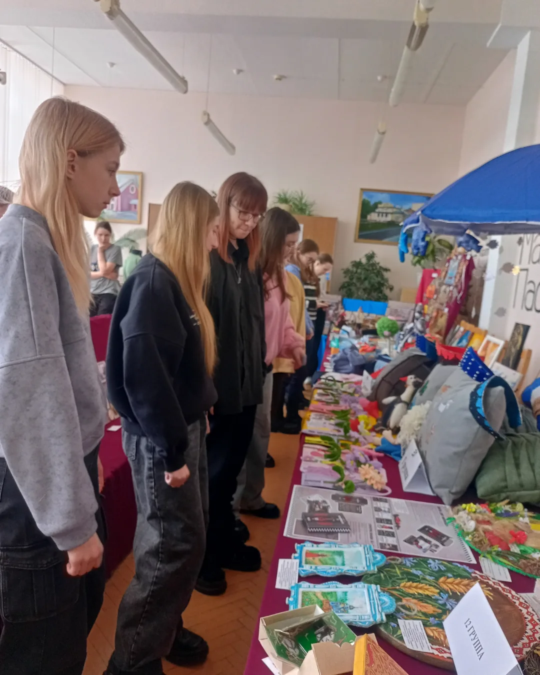 Обучающиеся продемонстрировали декоративные панно, на которых изображена символика Республики Беларусь; инкрустированные деревянные изделия-яйца, с тематикой известных, массовых мест города Гомеля; декоративную консоль, с элементами резьбы.