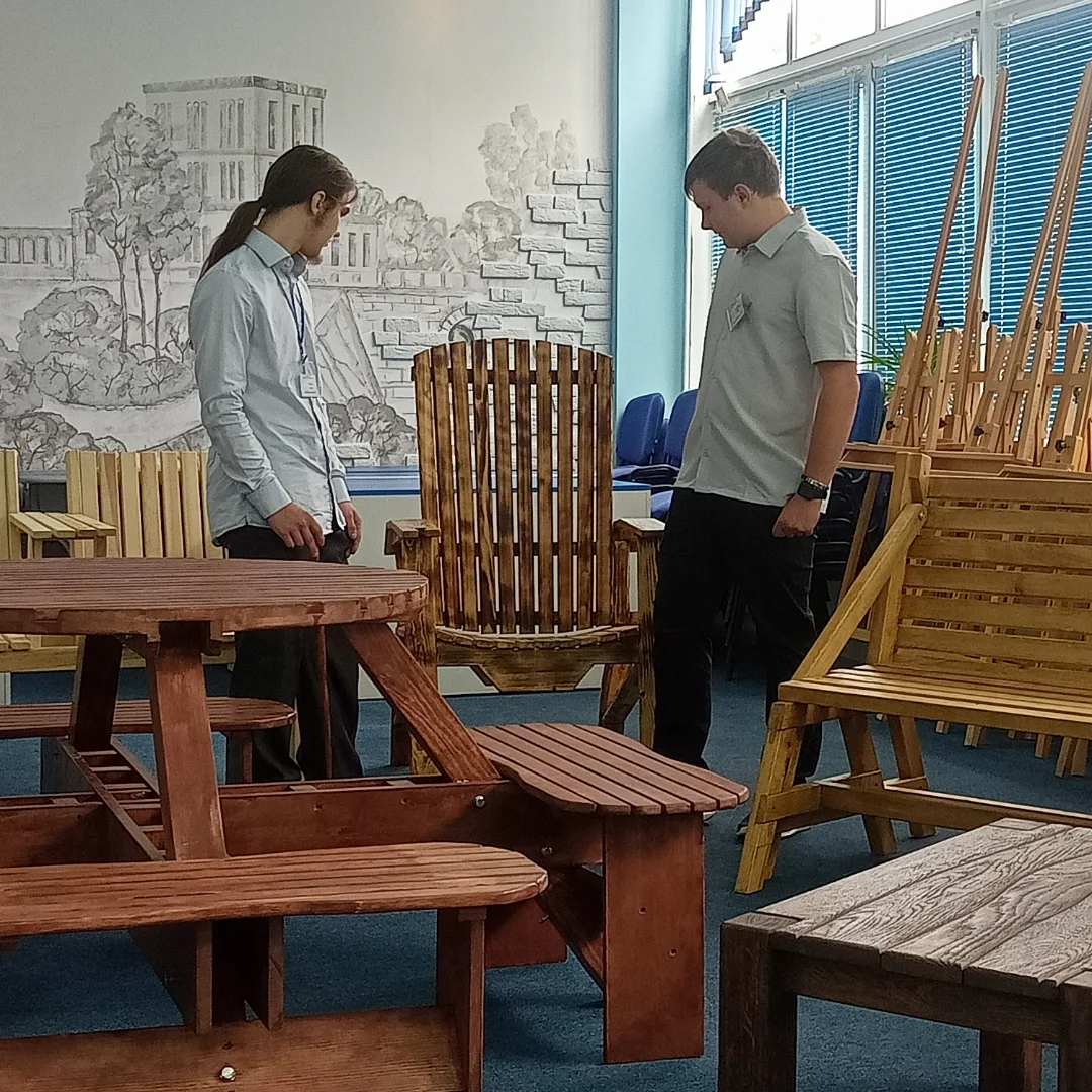 Обучающиеся продемонстрировали декоративные панно, на которых изображена символика Республики Беларусь; инкрустированные деревянные изделия-яйца, с тематикой известных, массовых мест города Гомеля; декоративную консоль, с элементами резьбы.